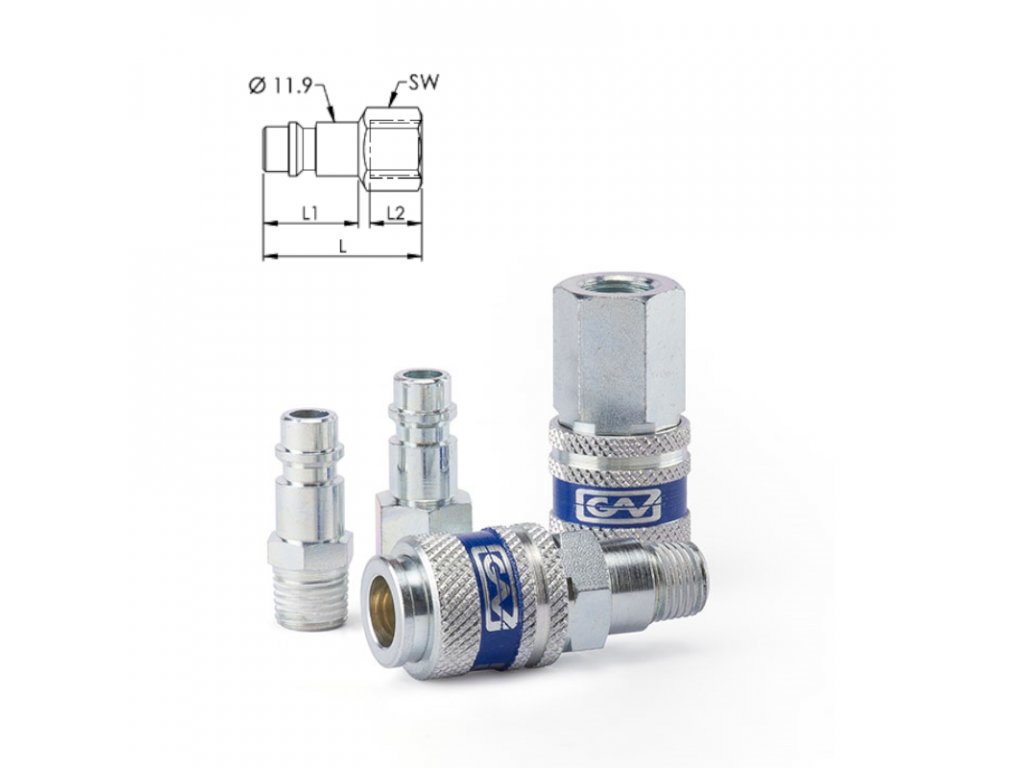 - Ocelové rychlospojky a vsuvky na stlačený vzduch, pozinkované, s vnějšími i vnitřními závity a s připojeními na hadice.- Profesionální univerzální rychlospojky a vsuvky z vysoce kvalitní, tvrzené oceli.