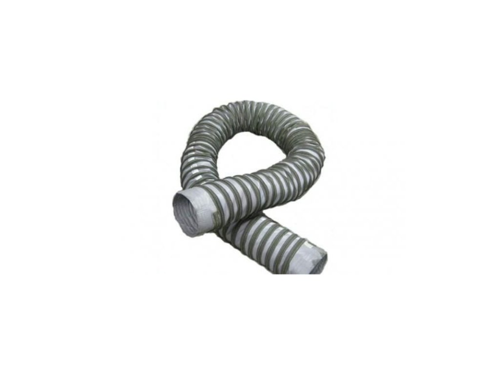 - Aluminizovaná skleněná tkanina pružná hadice s vysokou pevností v tahu.- Ocelová spirála šitá externě.