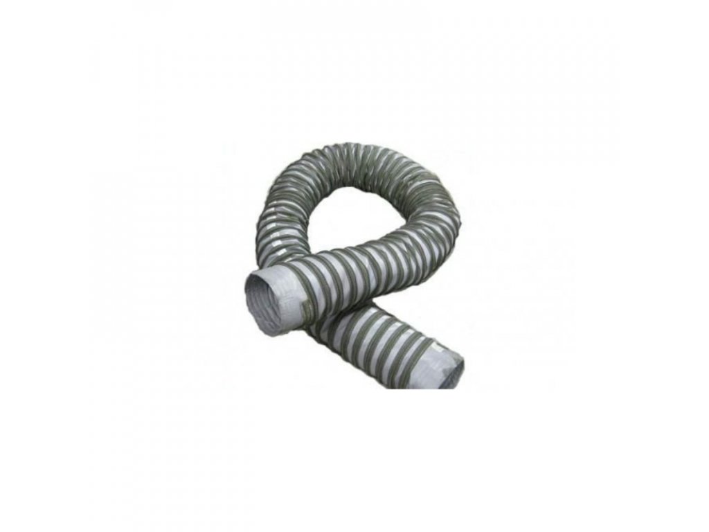 - Aluminizovaná skleněná tkanina pružná hadice s vysokou pevností v tahu.- Ocelová spirála šitá externě.