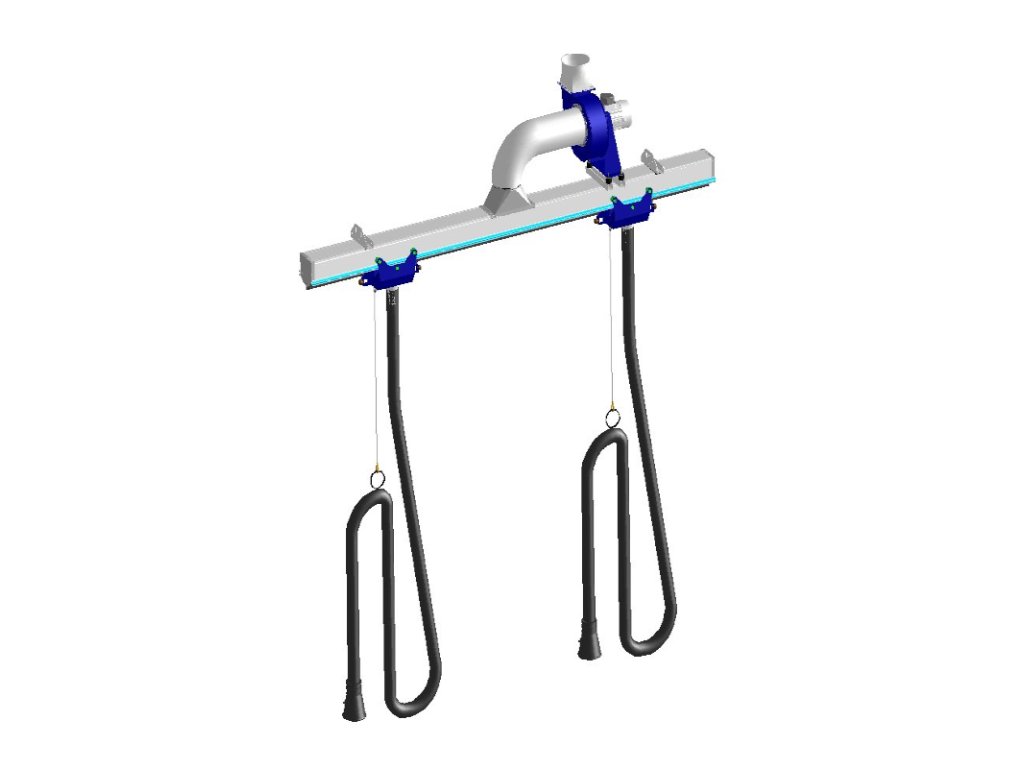 - Kompletní systém se dvěma hadicemi, odsávání s hliníkovou kolejnicí XTK1 a posuvným vozíkem.- Systém obsahuje ventilátor a jeho upevňovací zařízení včetně kolejnice.