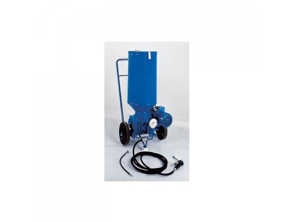 Čerpadlo je upevněno na rámu podvozku. K vývodu čerpadla je připojena vysokotlaká hadice (standardně o délce 5 m) zakončená mazací pistolí. Pojízdný mazací přístroj je vybaven motorovým spouštěčem a kabelem s vidlicí k připojení do sítě elektrického proudu.