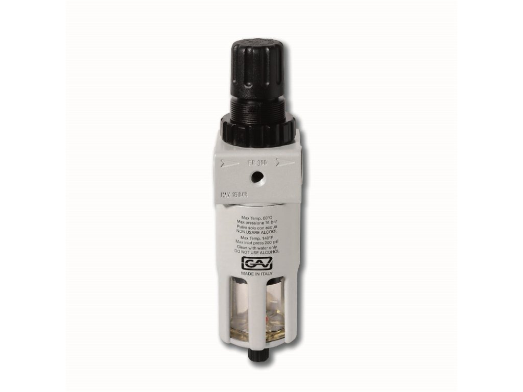 - Regulátor tlaku s odlučovačem- Filtr s automatickým odtokem k dispozici na vyžádání (FR300-SA).