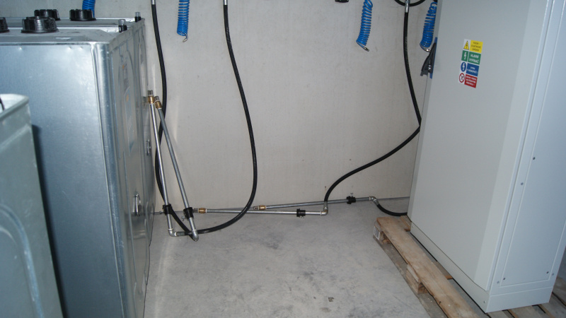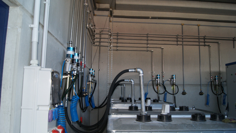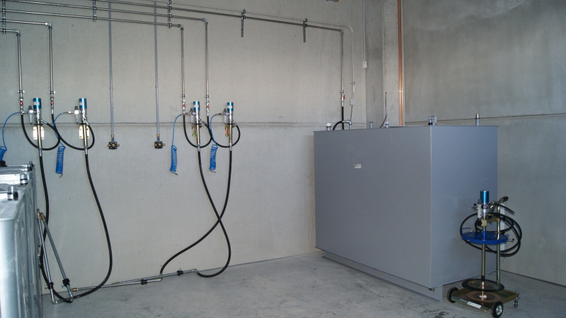 Realizácia kompletného olejového hospodárstva pre servisné stredisko spoločnosti Aquasys. Výdaj olejov prostredníctvom navíjačov, všetko monitorované elektronickým výdajným systémom s prenosom dát do PC. Zber použitého oleja v jamách a odvod do centrálnej skladovacej nádrže. V rámci olejového hospodárstva dodané aj kompletné vybavenie na odsávanie výfukových splodín a zváracích plynov.