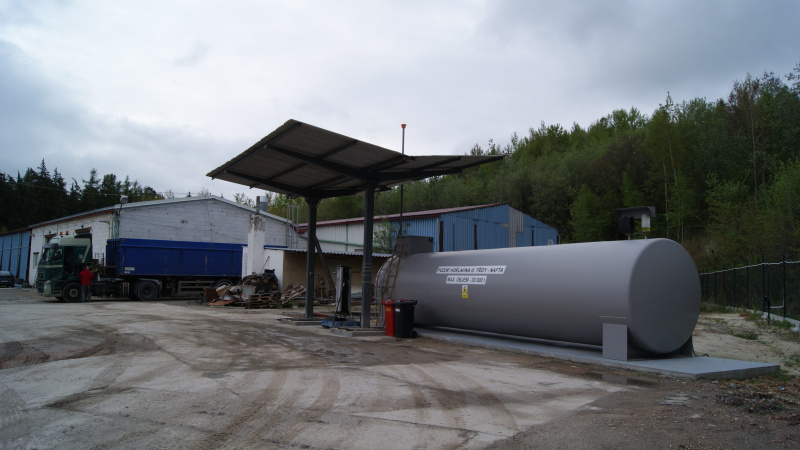 Vnútropodniková čerpacia stanica pre spoločnosť LB Minerals v Chlumčanoch. Skladovanie nafty v dvojplášťovej celokovej nádrži. Výdaj cez samostatne stojiaci stojan s elektronickou evidenciou, filtráciou a snímaním stavu nafty v nádrži.