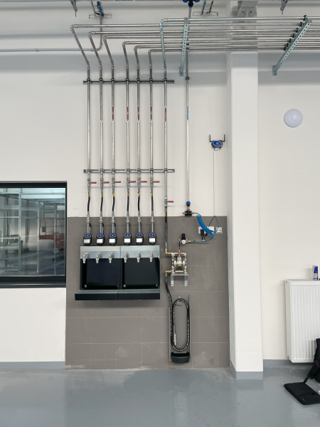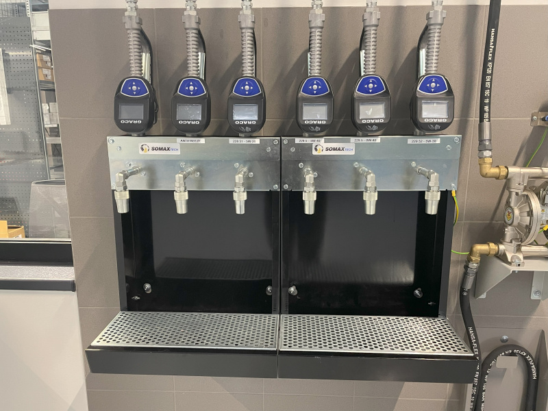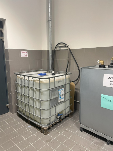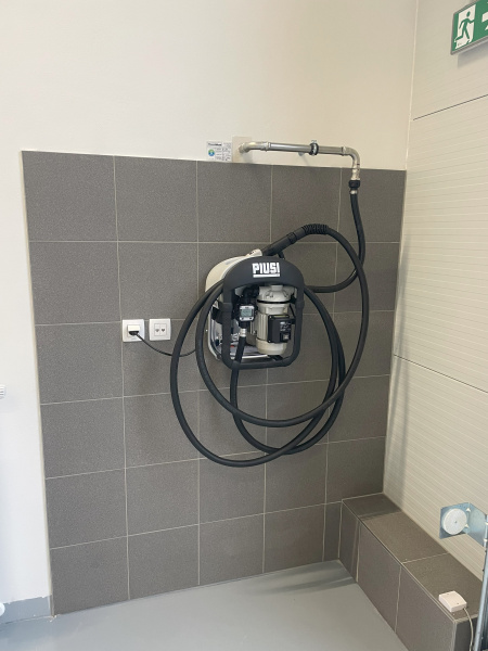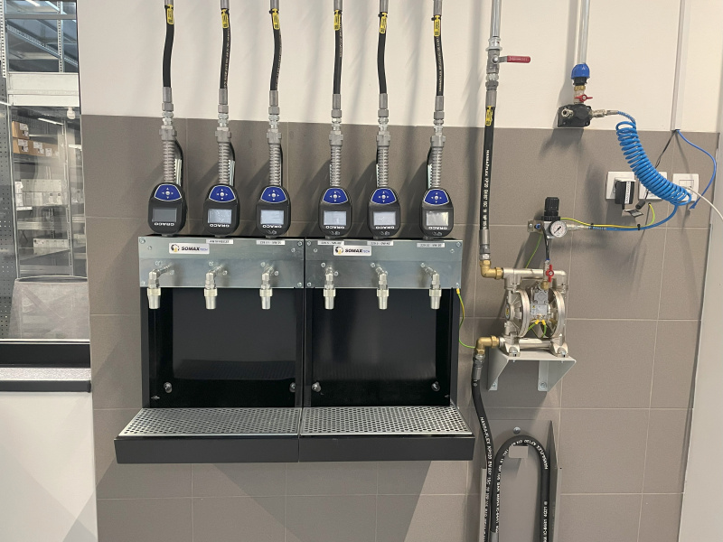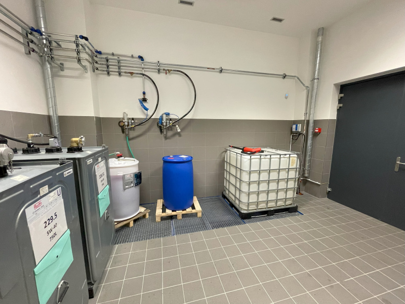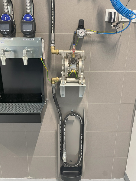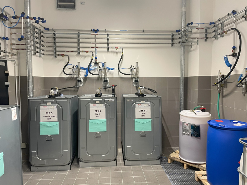 Kompletnou technológiou olejového hospodárstva sme vybavili servis osobných automobilov Mercedes-Benz Fa Rene v Pardubiciach. Osadili sme výdajný bar pre šesť druhov nových kvapalín, ktorý je zároveň osadený novým bezdrôtovým monitorovacím systémom Pulse Pro s napojením do nadradeného DMS systému. Zber použitého oleja prebieha do mobilných odsávačiek/vypúšťačiek a od výdajného baru je potom odsávaný do zbernej podzemnej nádrže mimo budovy. Hladina v nádrži je meraná bezdrôtovou sondou s prenosom do systému Pulse Pro. Výdaj AdBlue na nástennej zostave s napojením na IBC kontajner umiestnený v olejárni.