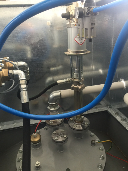Dodávka olejového hospodárstva pre automotive výrobcu KION Striebro. Olej skladovaný v dvojplášťovej celokovovej nádrži, vybavenej izolačnou vrstvou a vyhrievaním plášťa s termostatom. Distribúcia do výroby pomocou priemyselného piestového čerpadla RAASM. Elektronické snímanie hladiny v nádrži. Rozvody realizované v dvojplášťovom prevedení.