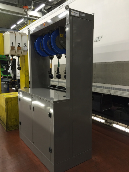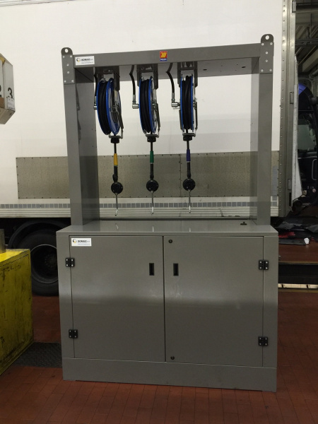Realizácia olejového hospodárstva pre servis MAN v Čestliciach. Výdaj nových olejov a odsávanie použitého oleja.