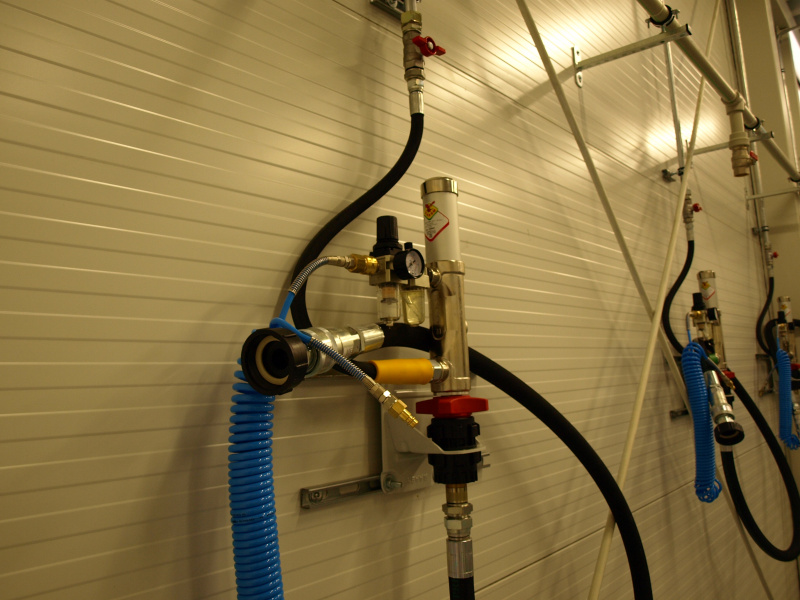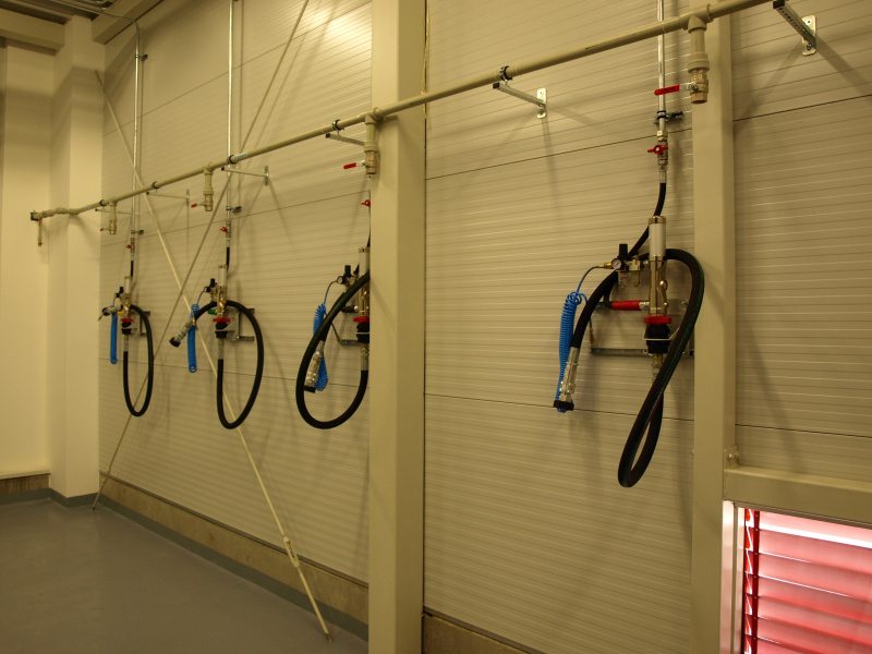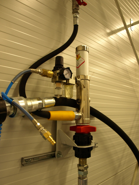 Realizácia kompletného olejového hospodárstva pre servis Master Truck v Měšiciach. Výdaj olejov v priestore usadenom stojane s navíjačmi. Stojan osadený monitorovacím systémom s prenosom dát do PC a evidenciou v nadriadenom systéme. Odsávanie použitého oleja priamo z pojazdnej vane vybavenej pneumatickým čerpadlom, ktorá je umiestnená v montážnej jame. Nádrž použitého oleja vybavená snímačom maximálnej hladiny so zvukovou a svetelnou signalizáciou na servisnú halu.