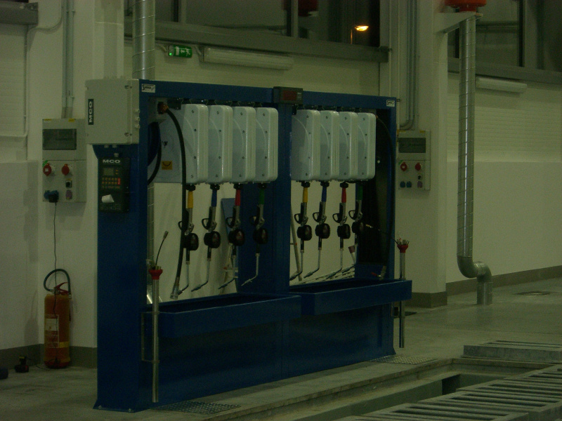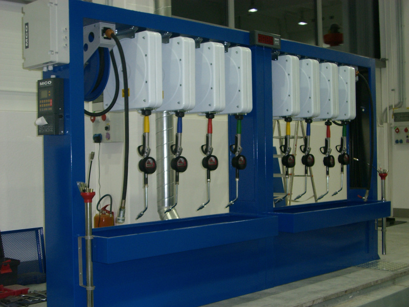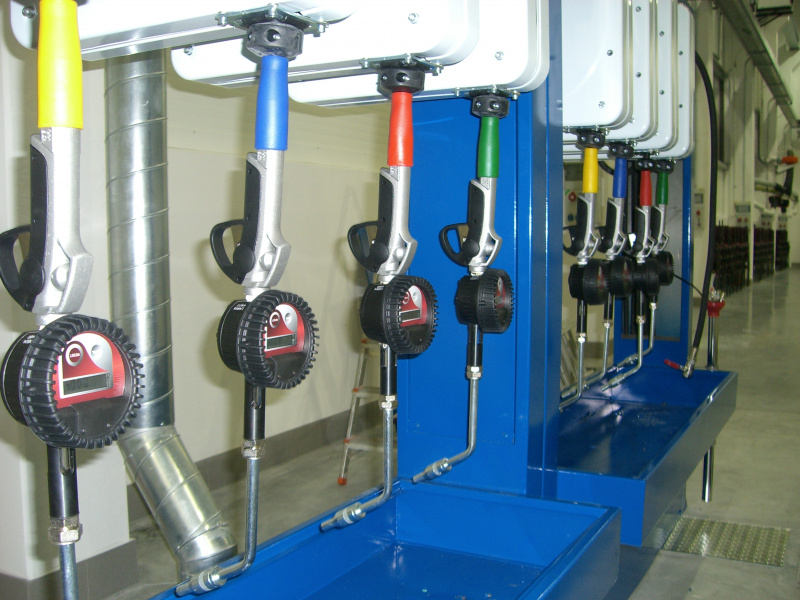 Vybavenie pre výdaj olejov a zber použitého oleja pre servisné stredisko spoločnosti Mrózek.