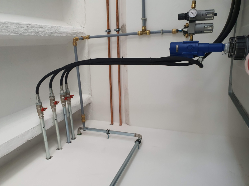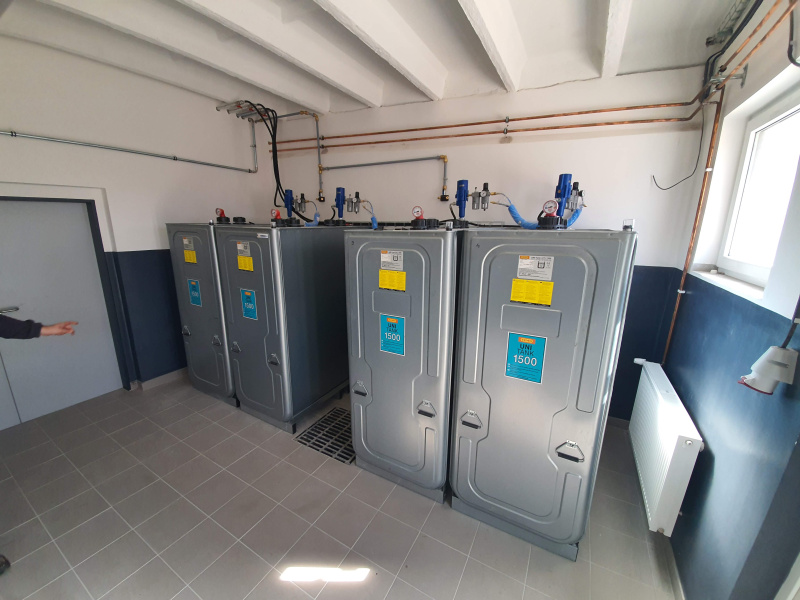 Realizácia výdaja nových olejov a zberu použitého oleja pre servis SCANIA v Pardubiciach. Výdaj nových kvapalín monitorovaný systémom pre prenos dát do PC. Skladovanie nových olejov v dvojplášťových nádržiach osadených pneumatickými čerpadlami. Zber použitého oleja do dvojplášťovej celokovej kvadratickej nádrže vyrobenej na zákazku.