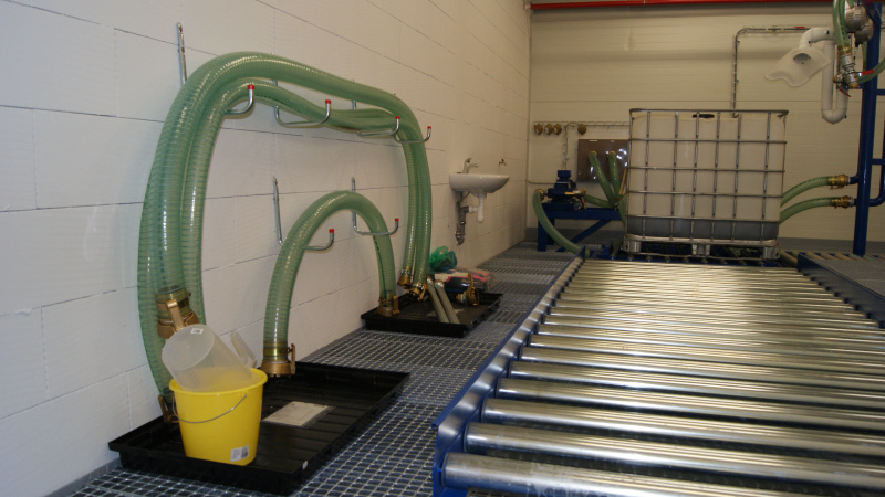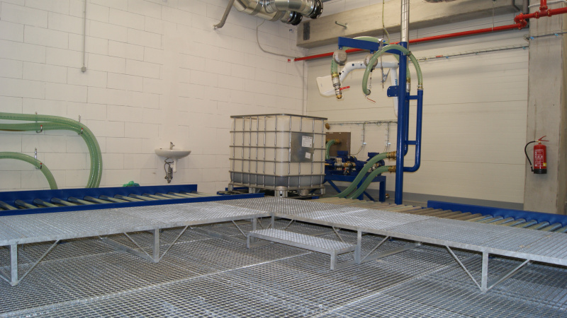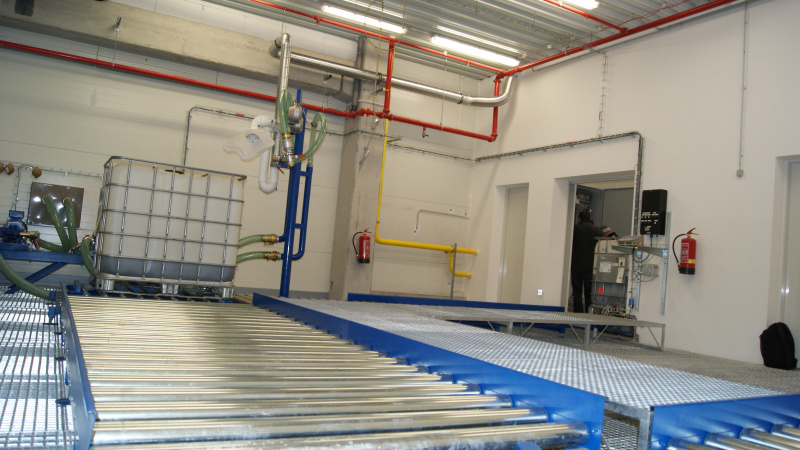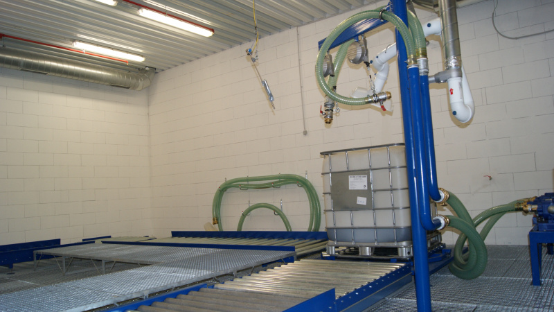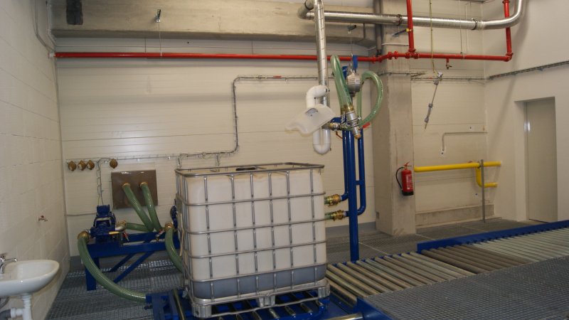 Realizácia stáčacej linky olejov v sklade ND Logistic. Stáčanie olejov prebieha na valčekovej dráhe pre posun IBC kontajnerov. Linka osadená výkonnými elektrickými čerpadlami na stáčanie olejov a solventov. Systém je osadený certifikovanou váhou, ktorá pri dosiahnutí požadovaného množstva stáčania ukončí automaticky stáčanie a pripraví systém na stáčanie ďalšieho kontajnera. Systém je zároveň vybavený odsávaním možných pár a ich filtráciou. Dodávka vrátane kompletnej elektroinštalácie.