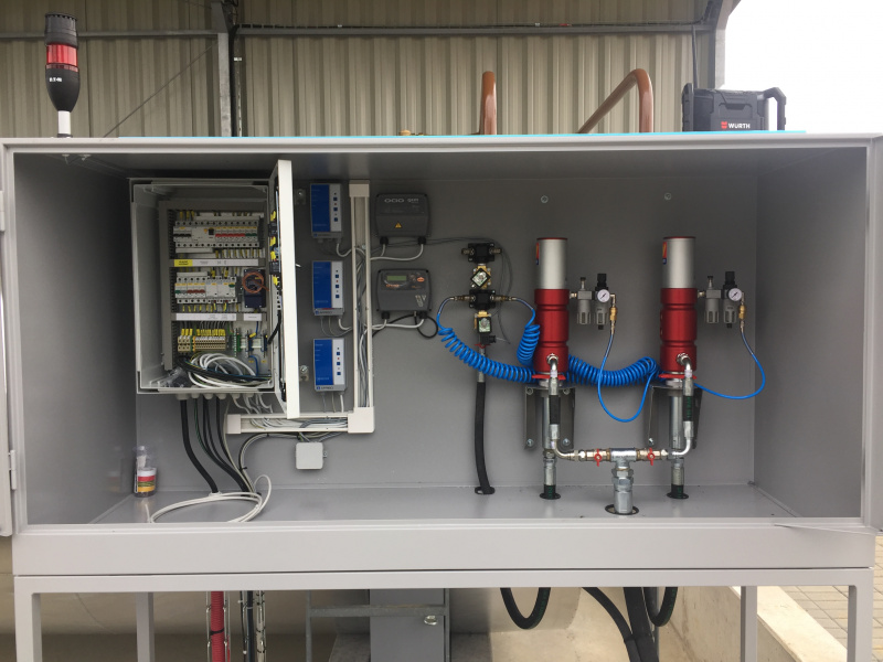 Realizácia olejového hospodárstva na výrobu Valeo Žebrák. Skladovanie špeciálneho vyparovacieho oleja v celokovovej dvojplášťovej nádrži vybavenej izoláciou a vyhrievaním s termostatom. Kapacita nádrže 30.000 l. Nádrž osadená miešacím systémom. Dodávka špeciálneho rozvádzača na riadenie funkcie čerpadiel a všetkej elektroniky. Celý systém automaticky dávkuje olej k výrobným strojom. Rozvody z lisovaného oceľového potrubia.