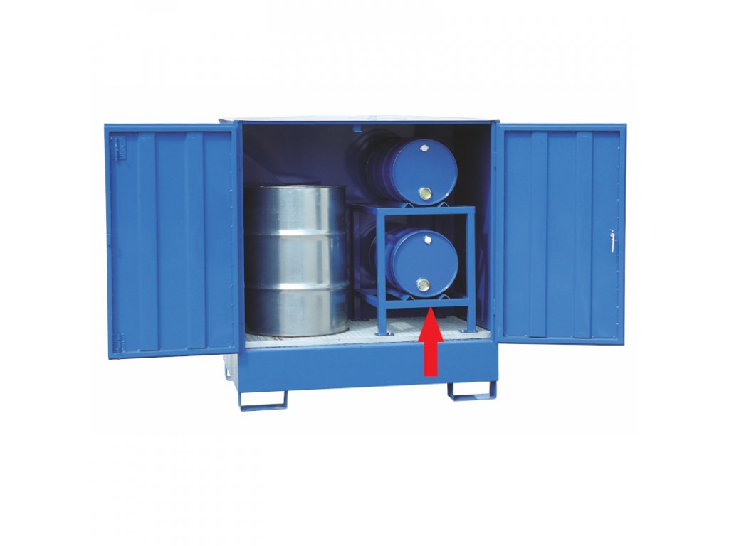 - Vhodné pro bezpečné a předpisové skladování vodu ohrožujících kapalin.- Dvoukřídlá vrata a odklápěcí víko usnadňují přístup ke skladovacím nádobám.