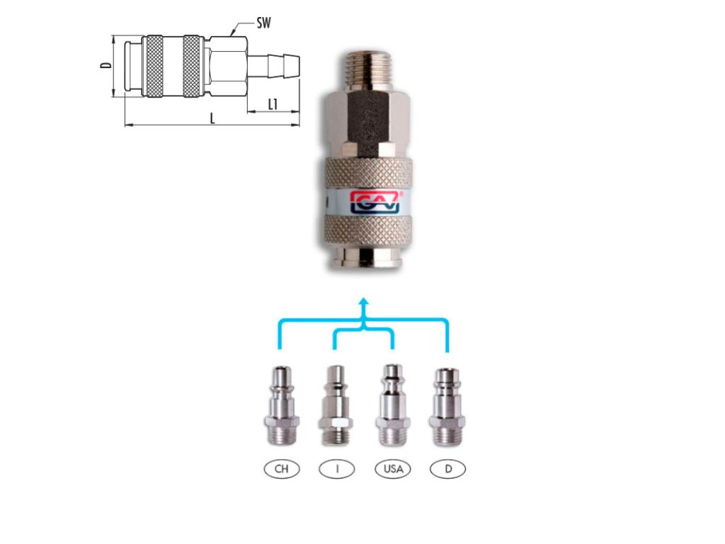 - Univerzální rychlospojka se šesti kuličkami (nerezová ocel)- Vhodná pro různé profily s velmi vysokým průtokem vzduchu