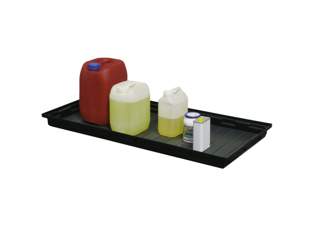 Pro skladování, mytí součástek a pro úkapy kapalin jako oleje, ochranné nástřiky, mycí a dezinfekční prostředky atd.